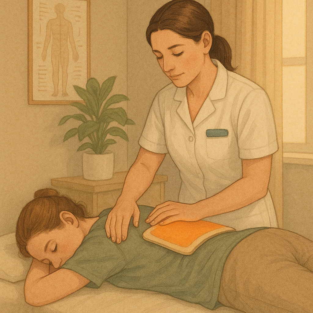 허리 주변의 긴장된 근육을 풀어주고 잘못된 자세를 바로잡는 과정이에요.